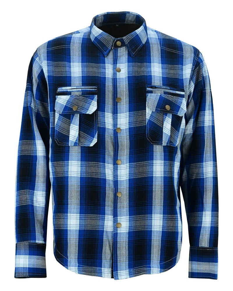 Whether you're riding through the city or hitting the open road, the Altimate Blue Flannel Motorcycle Shirt offers the perfect balance of style, protection, and functionality.