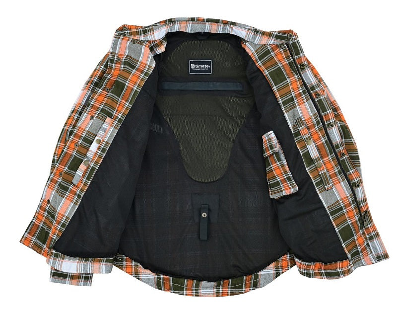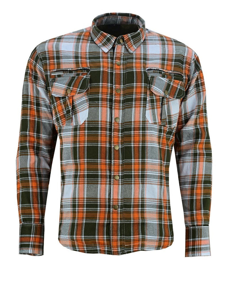 Perfect for riders who want a stylish, comfortable, and protective shirt, the Altimate Orange Flannel Motorcycle Shirt is ready for any adventure.